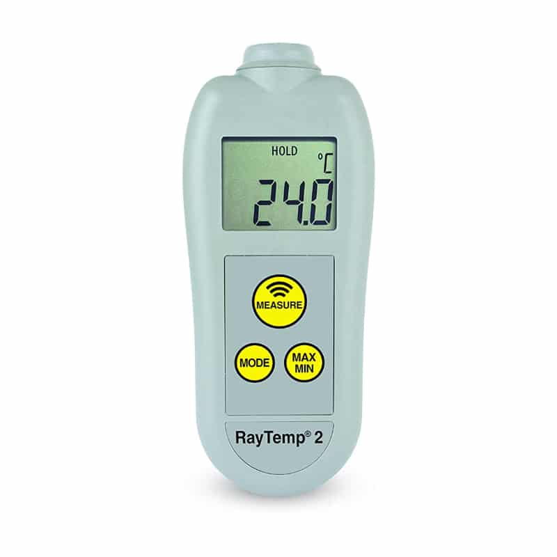 Le RayTemp® 2 dispose d’un ratio à cible de 5:1 et une émissivité fixe de 0.95 pour une utilisation simple et facile. Il faut être au maximum à 5 cm de la cible pour mesurer une surface de 1 cm.