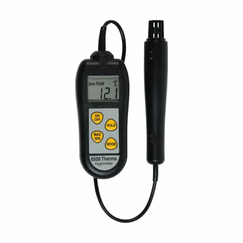 Le THERMA 6500 dispose d’un écran LCD avec l’affiche °C, % RH, max/min, hold and l’indication du point de rosée.